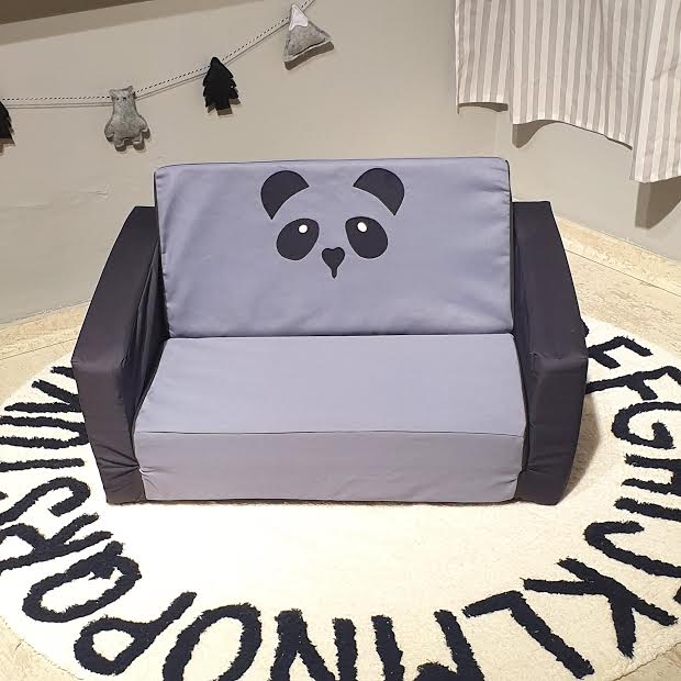 ספה לילדים - ספה מעוצבת לילדים שחור אפור דגם פנדה