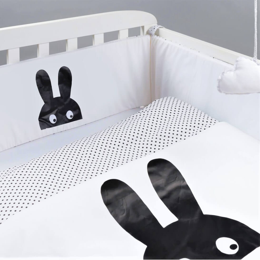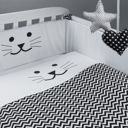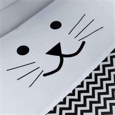 סט מצעים לתינוק דגם חתול שחור לבן.